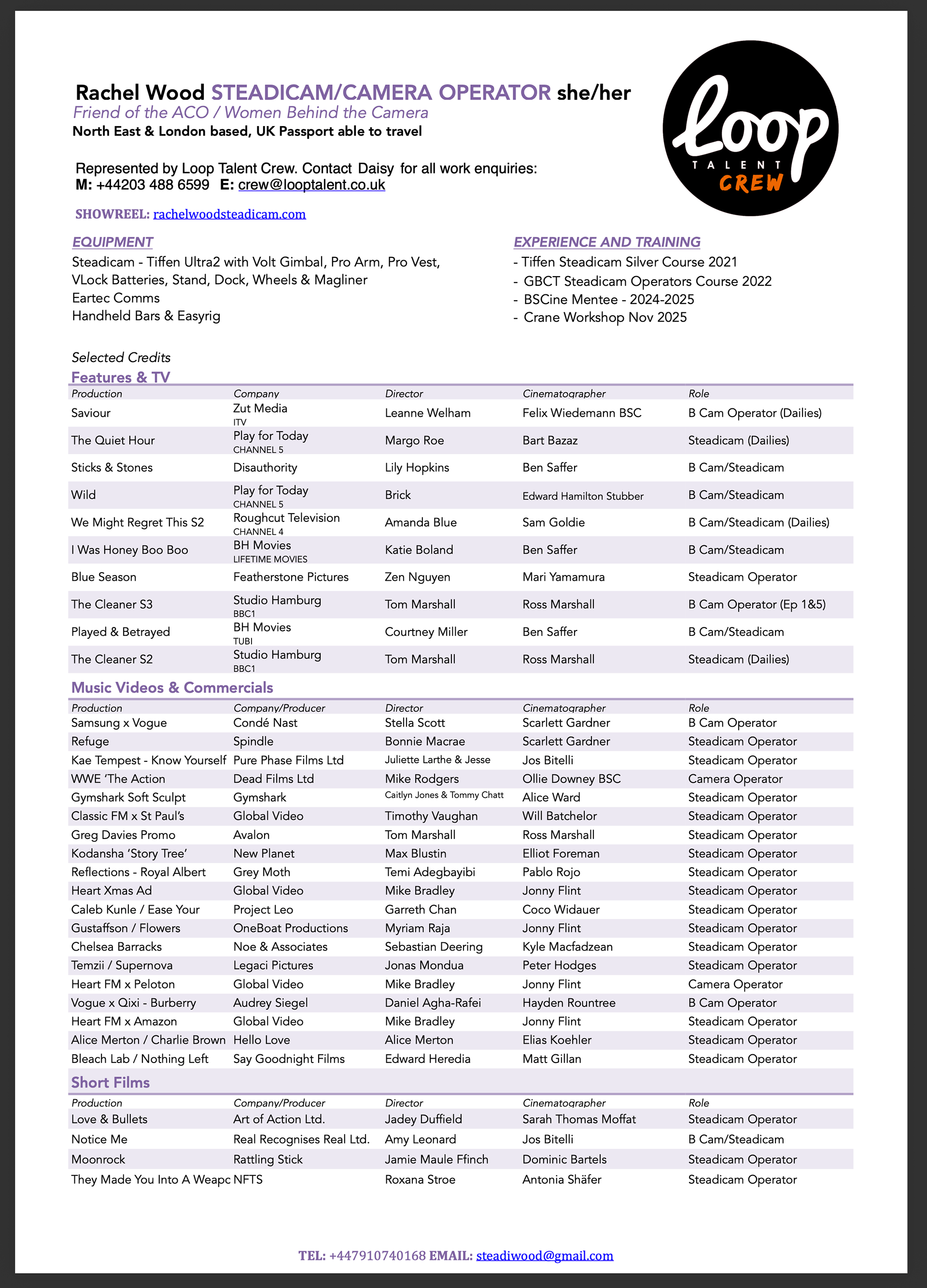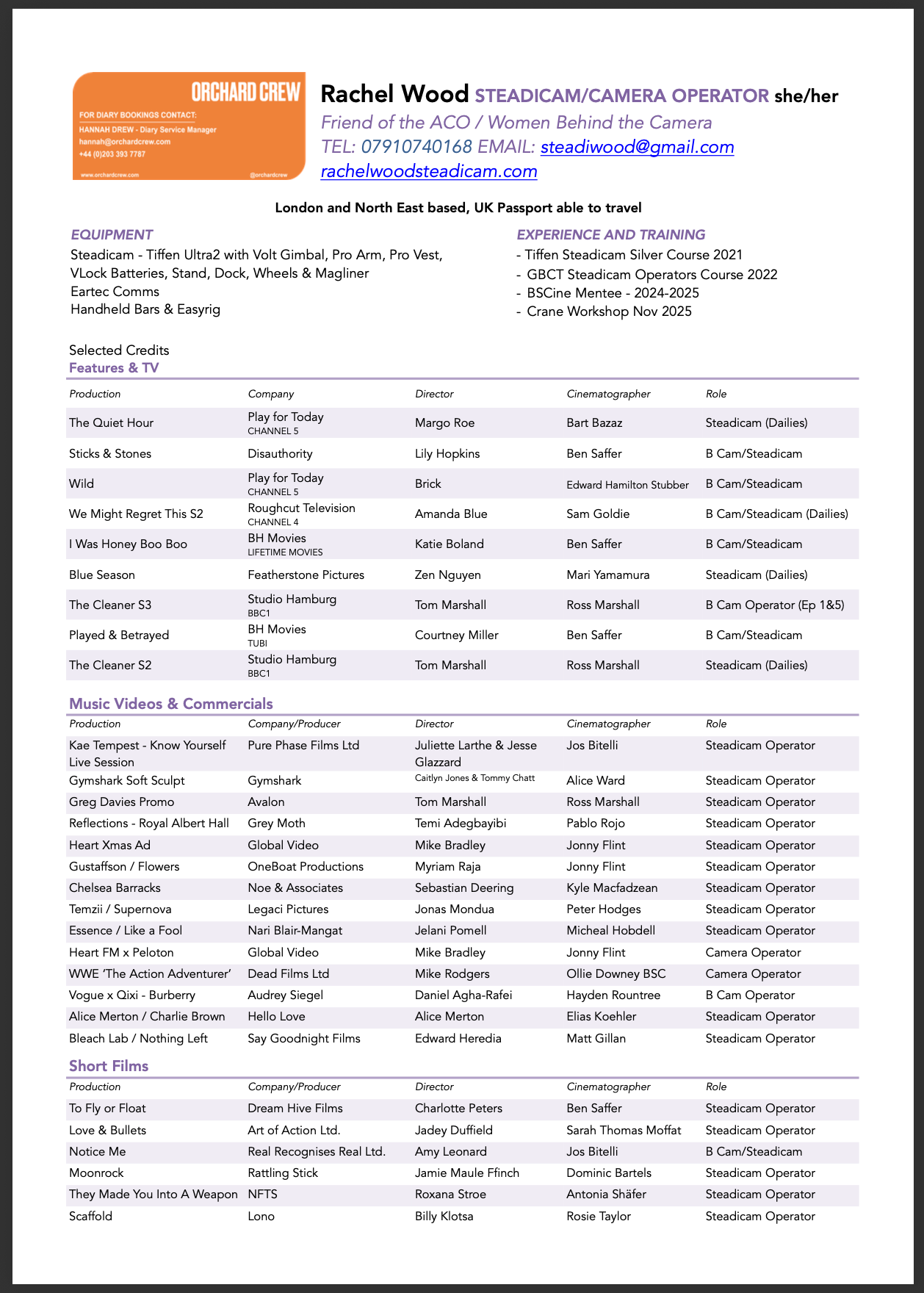 Steadicam/Camera Operator